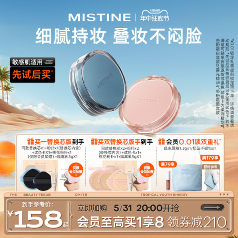 【前台价223.9,优惠券50,88会员淘金币加购,到手110.17起叠加88消费卷到手99元;赠:前4小时送奶咖化妆刷+粉扑+试色卡+妆前乳+卧蚕笔】混合皮拍桃花粉气垫,一拍遮瑕,细腻贴肤,通透服帖
