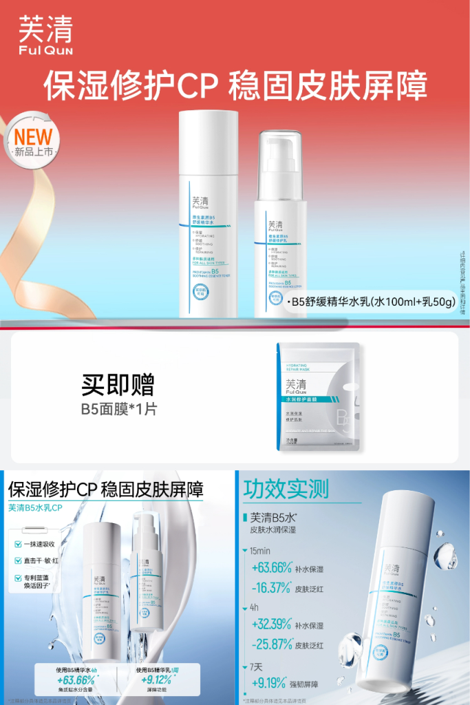 芙清B5水乳套装修护补水保湿舒缓敏感肌湿敷爽肤水乳液官方旗舰店