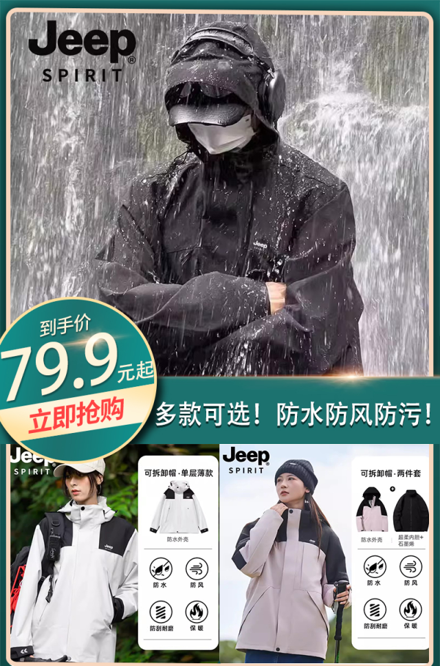 【JEEP】户外防风防水男女冲锋衣