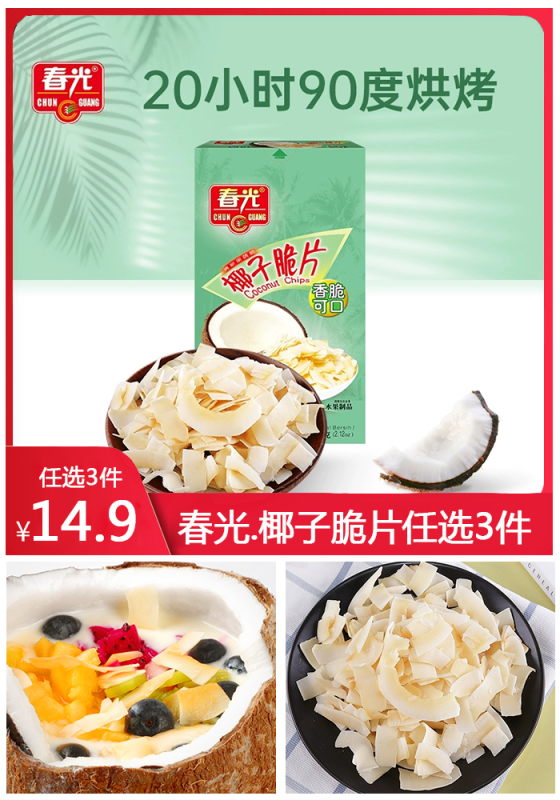 【拍3件,春光海南椰子脆片,烘烤果干零食特产,香脆可口,椰香浓郁,休闲解馋好选择!